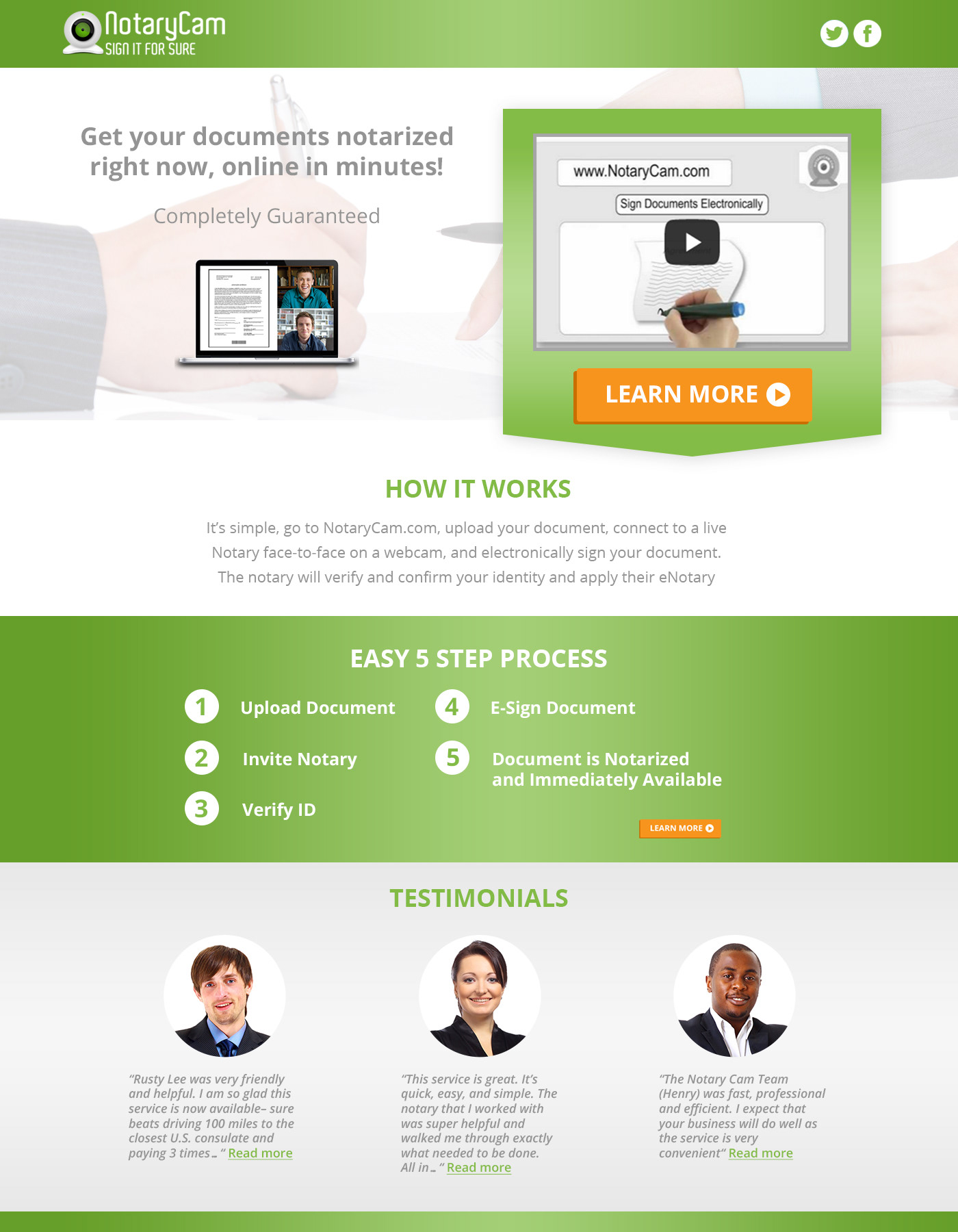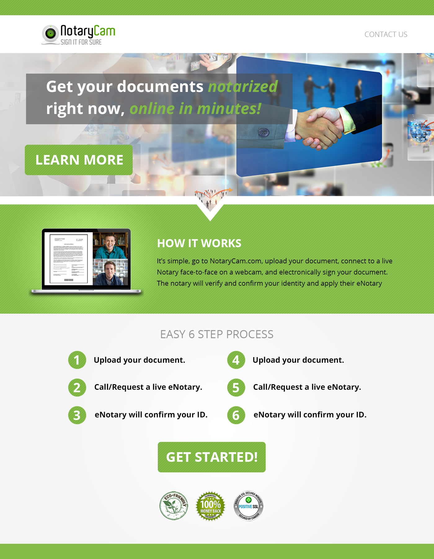 Notary Cam Landing Page Designs